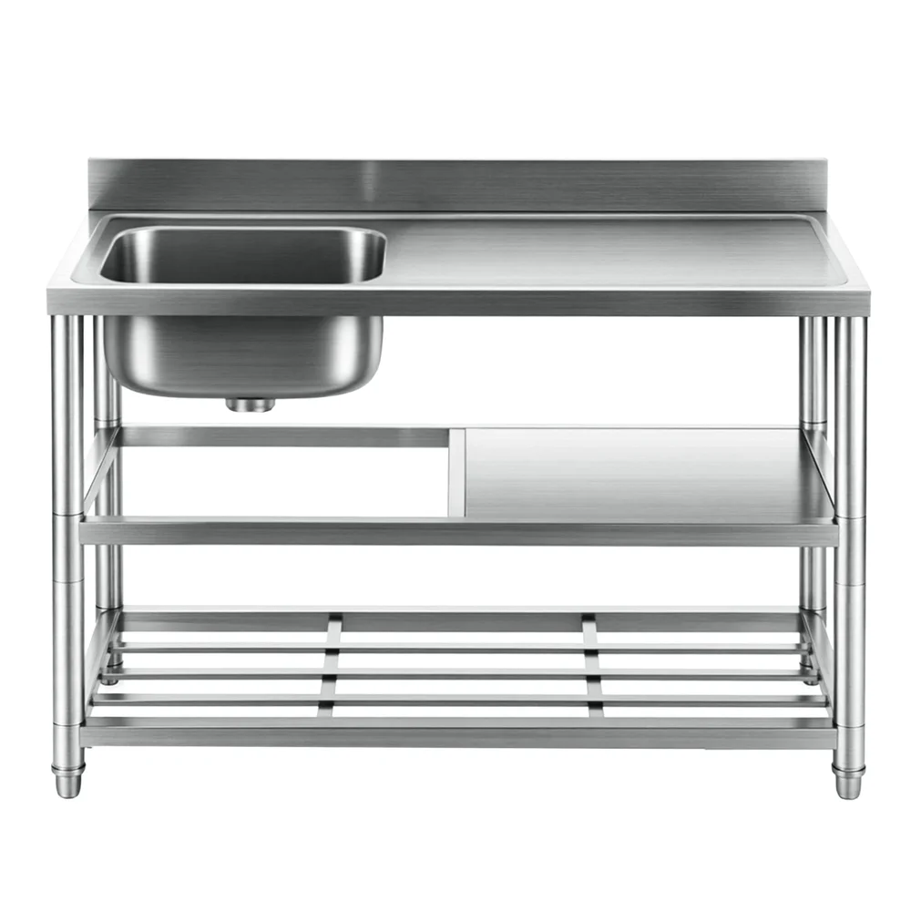 This Cefito Stainless Steel Kitchen Bench with a Sink is a game-changer for any kitchen. Crafted from premium 304 food grade stainless steel, this heavy duty stainless steel table combines a generous 120cm work table with a large capacity sink, all in one. The integrated bench top with splashback keeps your walls clean, while the durable construction makes it a perfect stainless steel prep table. It's the ideal solution for food prep and cleanup, offering both functionality and a sleek design.