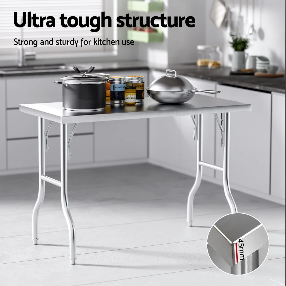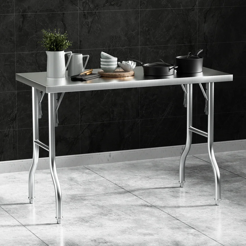 Our Stainless Steel Work Top is finished in commercial grade 430 stainless steel which makes it ideal for use in homes, cafes and restaurants. The treated bench edges provide extra safety working around the table while the adjustable feet allows you more height options for storage. Everything is held together firmly and easy installation. And if the floor is uneven, the adjustable legs can make things right with ease.Foldable design is good for saving-space.
