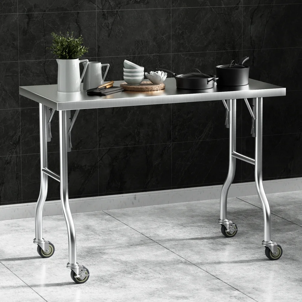 Made of 430 graded stainless steel, you can be assured that it will be a long lasting item in your kitchen. Fitted with lockable castors, stability is no longer an issue. Don't worry of tumbling bench anymore. Can be easily flat-packed for portable and on-site work, it is your first choice at all times.