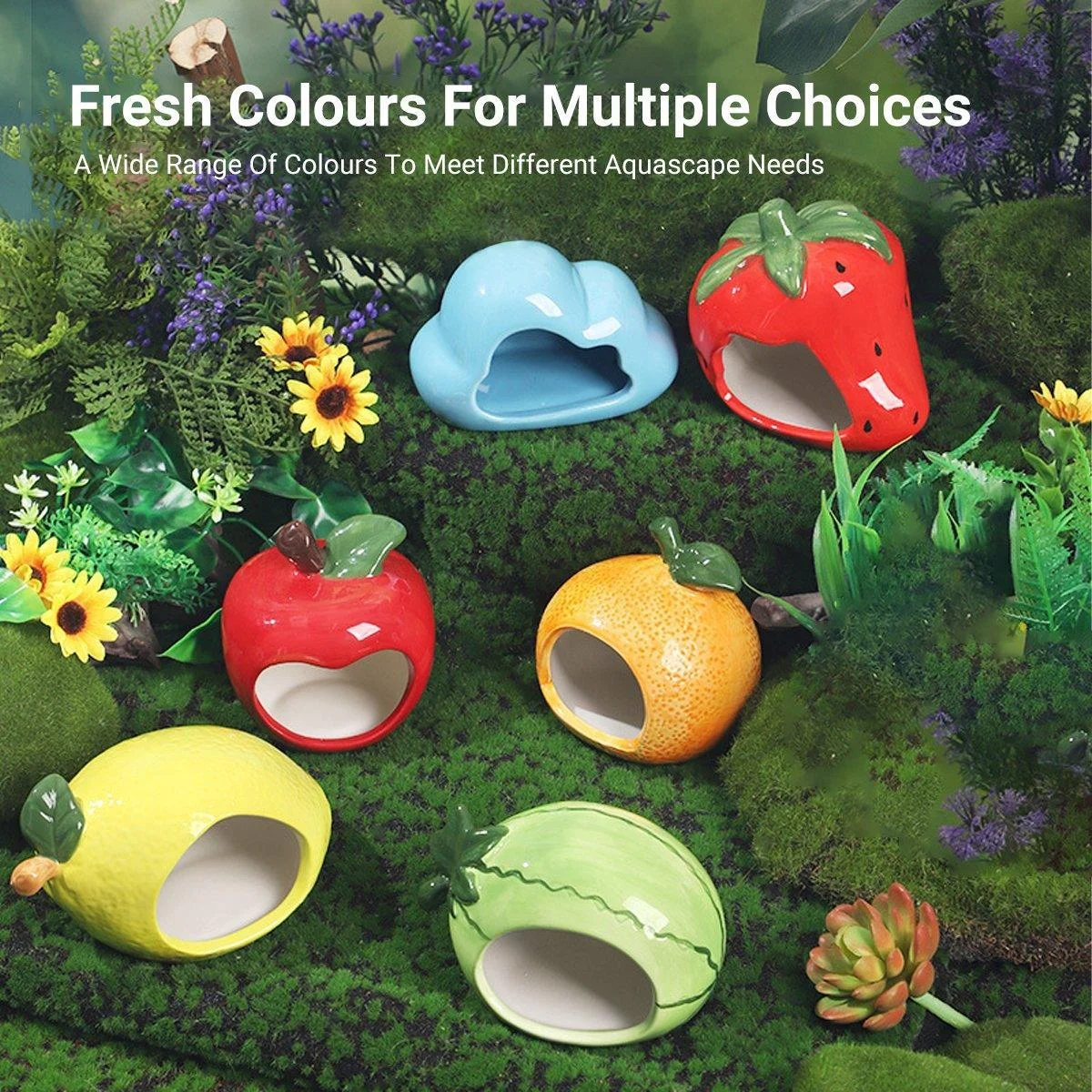 Introducing our adorable Hamster Nest Ceramic Shelter Landscaping Supplies, perfect for your small pets. Made from high-quality ceramic, these shelters provide a safe, comfortable, and cool environment for hamsters and other small animals. The charming fruit shapes not only serve as a cozy hideout but also add a playful touch to your pet's habitat. Easy to clean and durable, these ceramic shelters are designed to last and keep your pets happy.