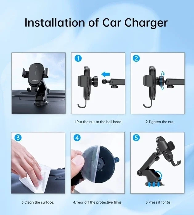 Material: ABS, PC, silicone Input: USB-C 5-12V / 2A Output: 15W (max) Certificates: ETL, RCM, FCC, CE, RoHS Dimensions: 117.2 x 101 x 50.4 mm The set includes: air vent clip, 1 m USB-C / USB-A cable Black colour