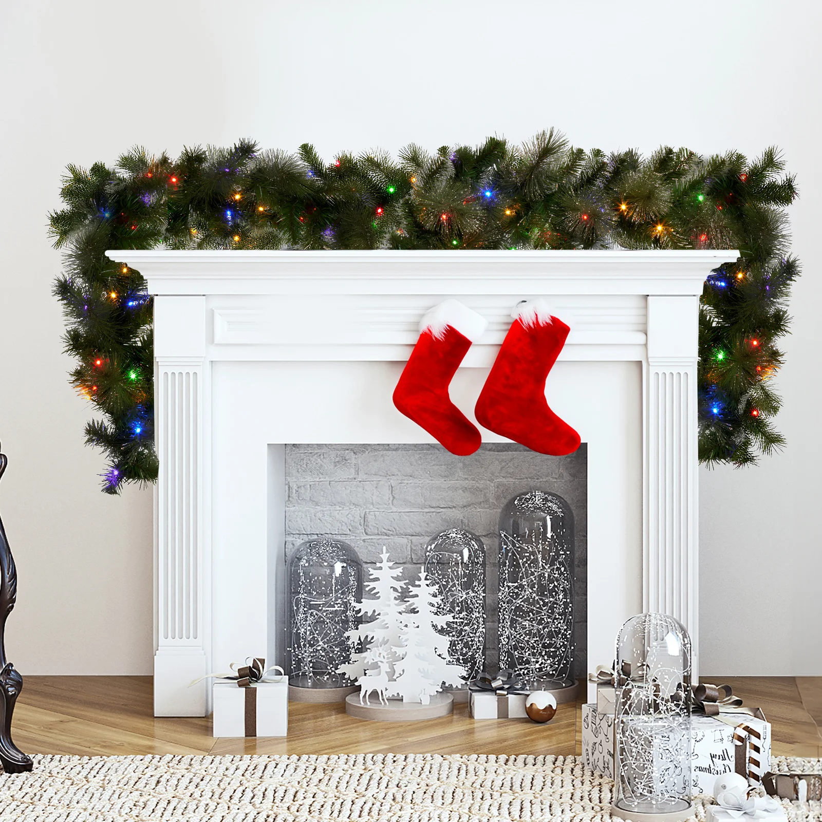 Twist, drape or shape, this 274cm Christmas garland is ready to sparkle your way. Its luxuriously thick foliage is dusted with gold glitter for a festive glow, while a wired centre lets you curve it around banisters, mantels or tabletops. Battery-operated LED lights offer multiple settings in white, colour or a mix, and the built-in timer keeps things glowing without a second thought.
