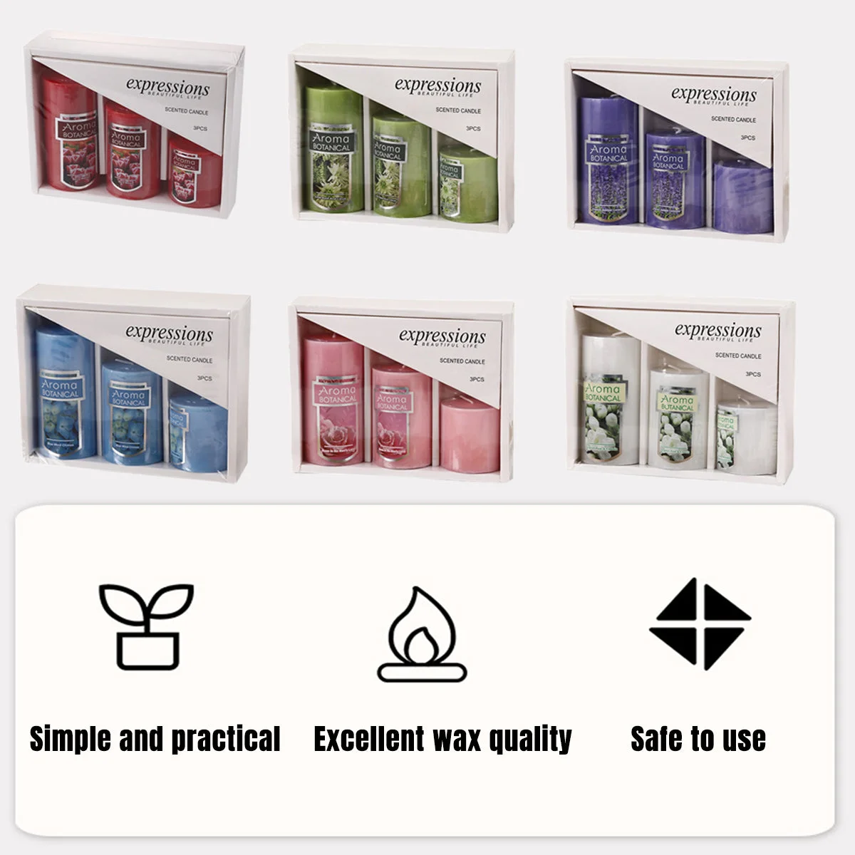 Enhance your home with the warm and inviting glow of these classic cylindrical scented candles. Made from high-quality wax, these candles burn cleanly without producing black smoke, ensuring a pleasant and relaxing atmosphere. The rich fragrances are carefully blended to provide a lasting scent experience, perfect for creating a calming ambiance in your living space, bedroom, or office. Whether used for decoration, aromatherapy, or relaxation, these candles make a stylish and practical addition to any home.