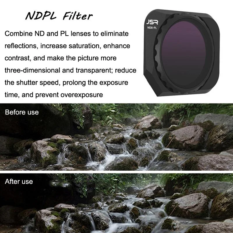 • NDPL: combine ND and PL lenses to eliminate reflections, increase saturation, enhance contrast, and make the picture more three-dimensional and transparent; reduce the shutter speed, prolong the exposure time, and prevent overexposure
