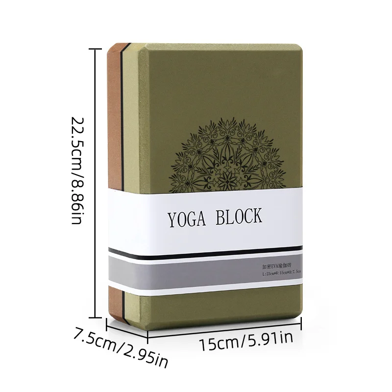 Olive Green/Brown High-Density EVA Foam Yoga Block for Support & Stability - Lightweight Non-Slip Brick for Yoga, Pilates & Stretching