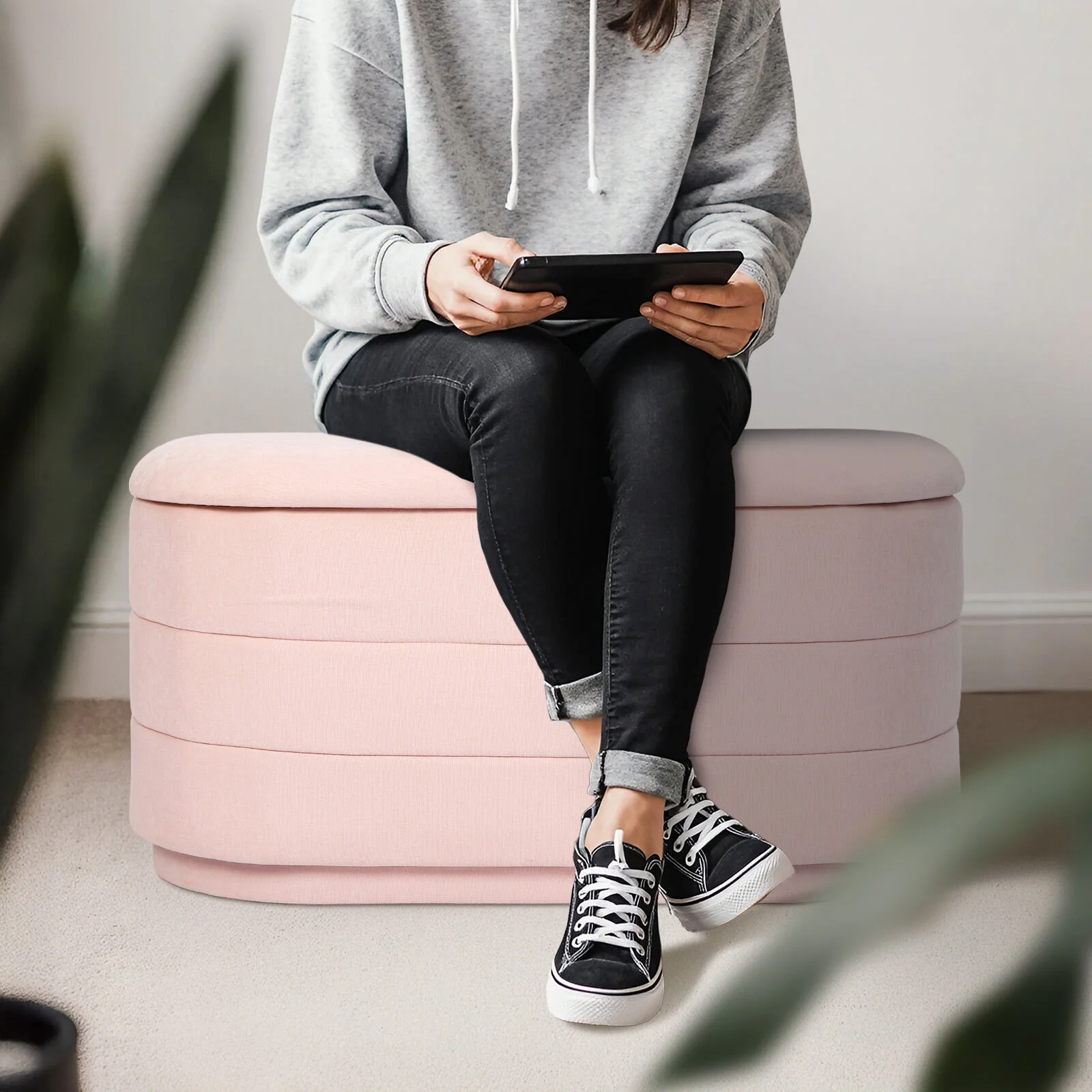 La Bella Coffee Table Storage Ottoman - Chenille Fabric Blanket Box Bench CELIA - Pink