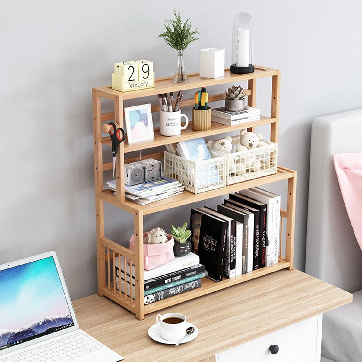 Bamboo 4 Tier Shelving Unit Kitchen Bedroom Bookshelf