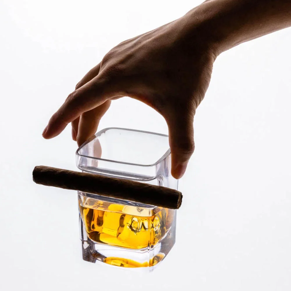 A smoke of genius. Part rocks glass, part cigar rest, Corkcicle's Cigar Glass lets you hold your drink and cigar in the same hand at the same time without all the awkward finger fumbling. So you’re free to sip and puff at your leisure. The cigar glass holder holds up to 9oz. of liquid and various cigar sizes.