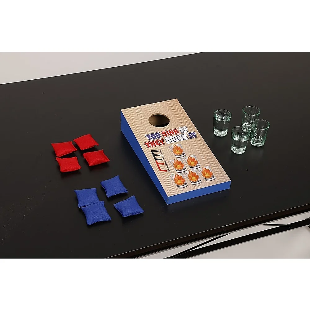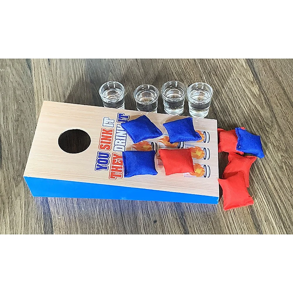 Crafted from durable wood and Oxford cloth, this game set is built to withstand repeated use while maintaining its quality and appearance.Measuring just 25.2 x 12.5 x 6cm, this sandbag toss game is incredibly portable, making it easy to carry to outdoor events or store when not in use.Each set comes with a game board, 4 bean bags, and 4 glass cups, adding an extra layer of fun to your gameplay.