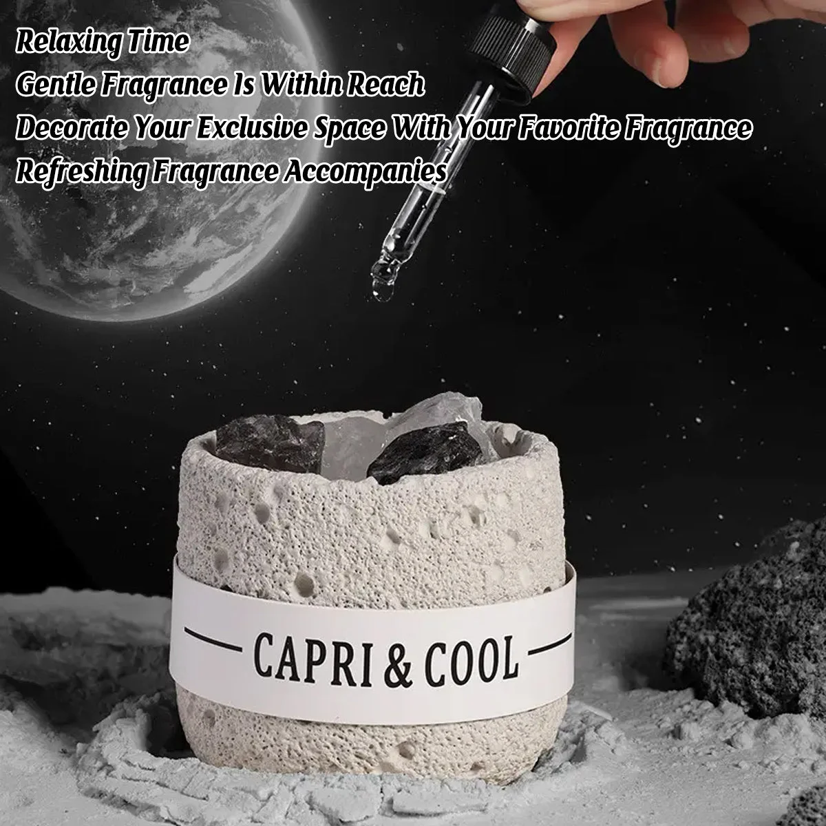 Designed for natural fragrance lovers, this crystal stone diffuser gently releases scent without heat or flame. Each volcanic-look container holds natural stones that absorb and disperse essential oils. Ideal for desks, nightstands or gift giving, it blends aesthetics and function with ease.