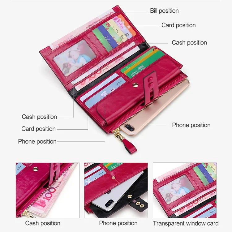 Rfid Leather Wallet with Lanyard - Multi-functional - Purple