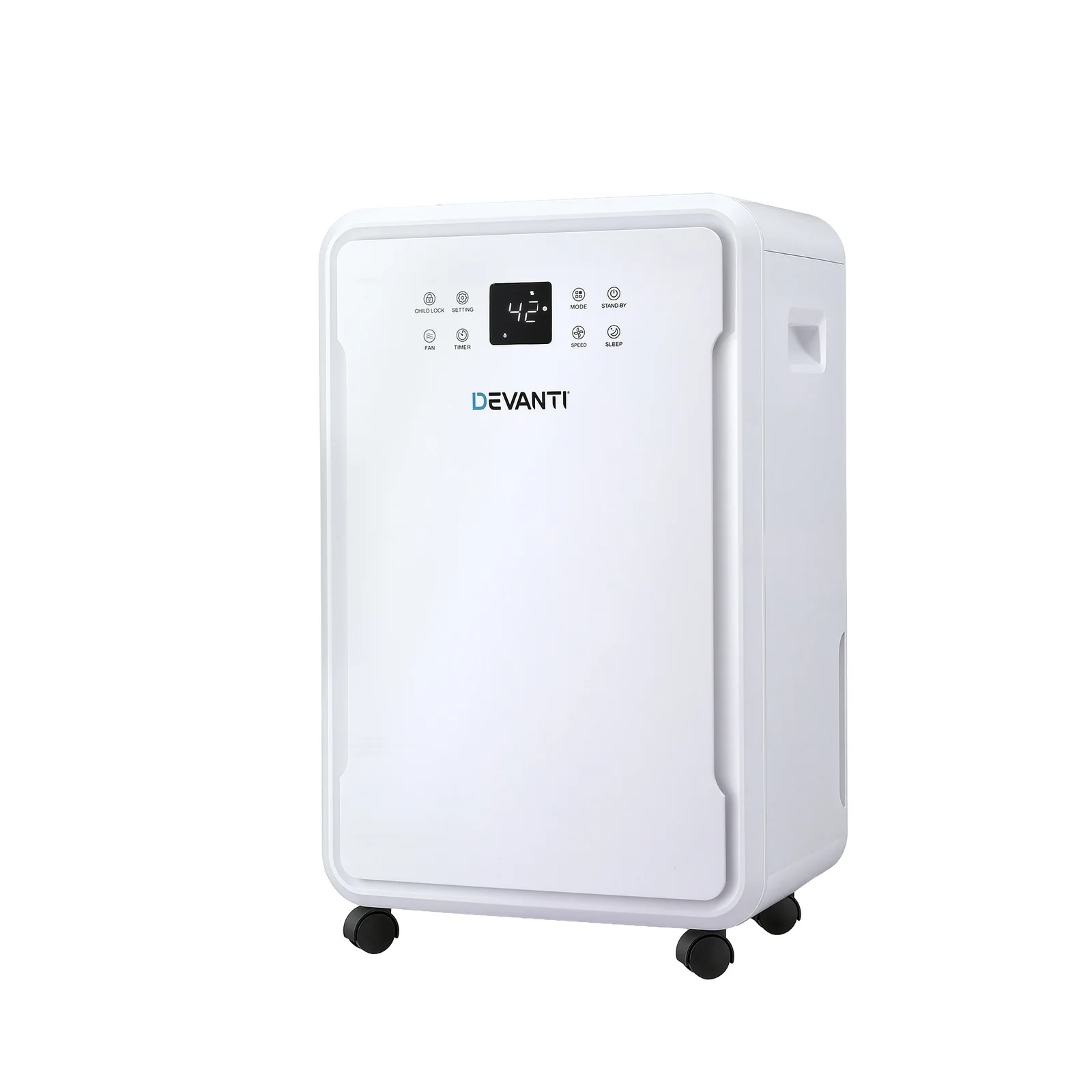 Combat moisture and mould with the Devanti 50L Dehumidifier. Designed for large spaces, this powerhouse extracts up to 50L/day and features a dedicated Laundry Mode for fast indoor drying. It boasts a massive 8.5L tank, 24h timer, and quiet Sleep Mode (≤47dB). Control humidity easily via the smart touch panel or use the included hose for continuous drainage. Built with easy-roll castors for mobility, it offers industrial-strength drying for your home.