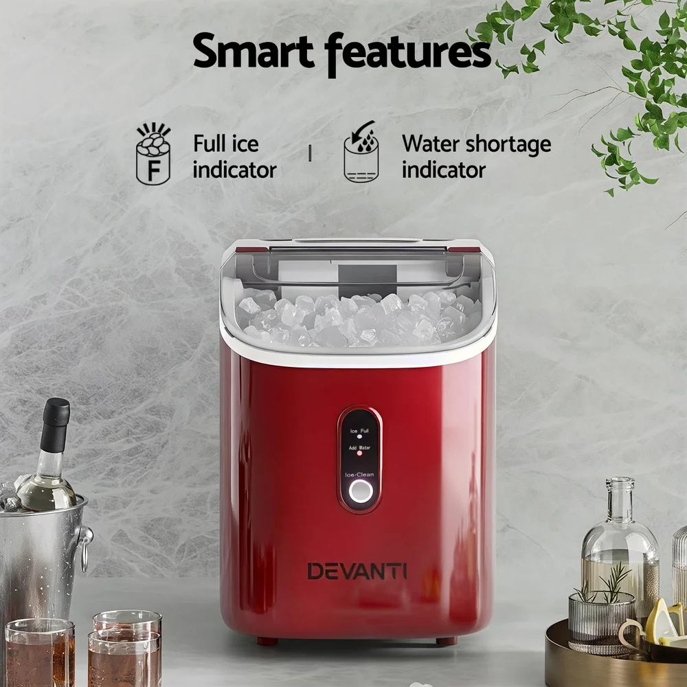 Looking for ice in a hurry? Meet our Devanti Ice Maker! Quickly produce ice cubes in 5-10 minutes. It's loaded with smart features like water shortage and ice full alarms, plus energy-saving technology through Freon-free refrigerant and enhanced heat dissipation. Its sleek, compact design fits anywhere, and with its easy-to-use controls, you'll be enjoying cold beverages in no time. Ice at home has never been cooler!