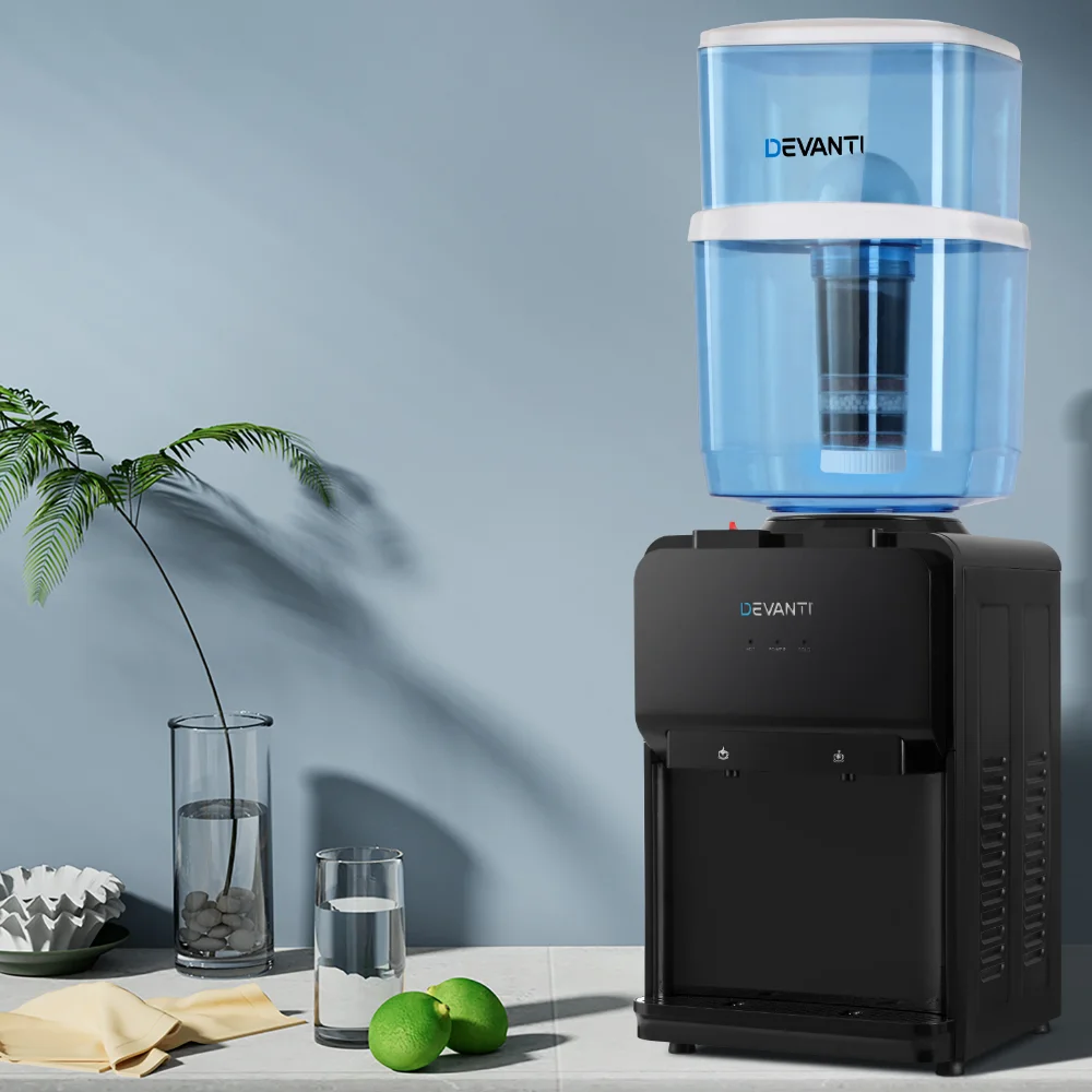 The Devanti Water Cooler combines convenience and functionality for your home or office. Featuring a top-loading design and compressor cooling technology, it delivers instant access to both hot and cold water with just a press of a tap. The 22L water filter container includes a 7-stage filtration system, ensuring clean and pure water for your daily needs. Built with food-grade plastic, it prioritises safety and durability while maintaining a sleek and modern appearance.