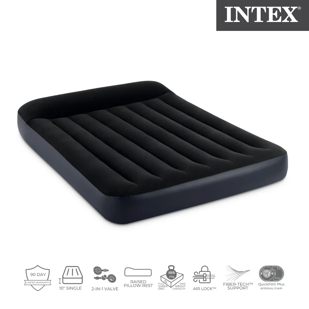 Double Full Pillow Rest Classic Airbed w Fibre-Tech (w/220-240V Built-in Pump)This compact and lightweight air mattress features a velvety sleeping surface and is enhanced with Fiber-Tech interior construction, ensuring both lasting durability and comfort. It's designed to provide a great night's sleep wherever you are, making it perfect for camping trips, guest accommodations, or travel. The high-quality materials offer optimal support, while its easy-to-transport size allows for convenient storage and portability. Whether you're indoors or outdoors, this air mattress is a reliable choice for a restful sleep experience.