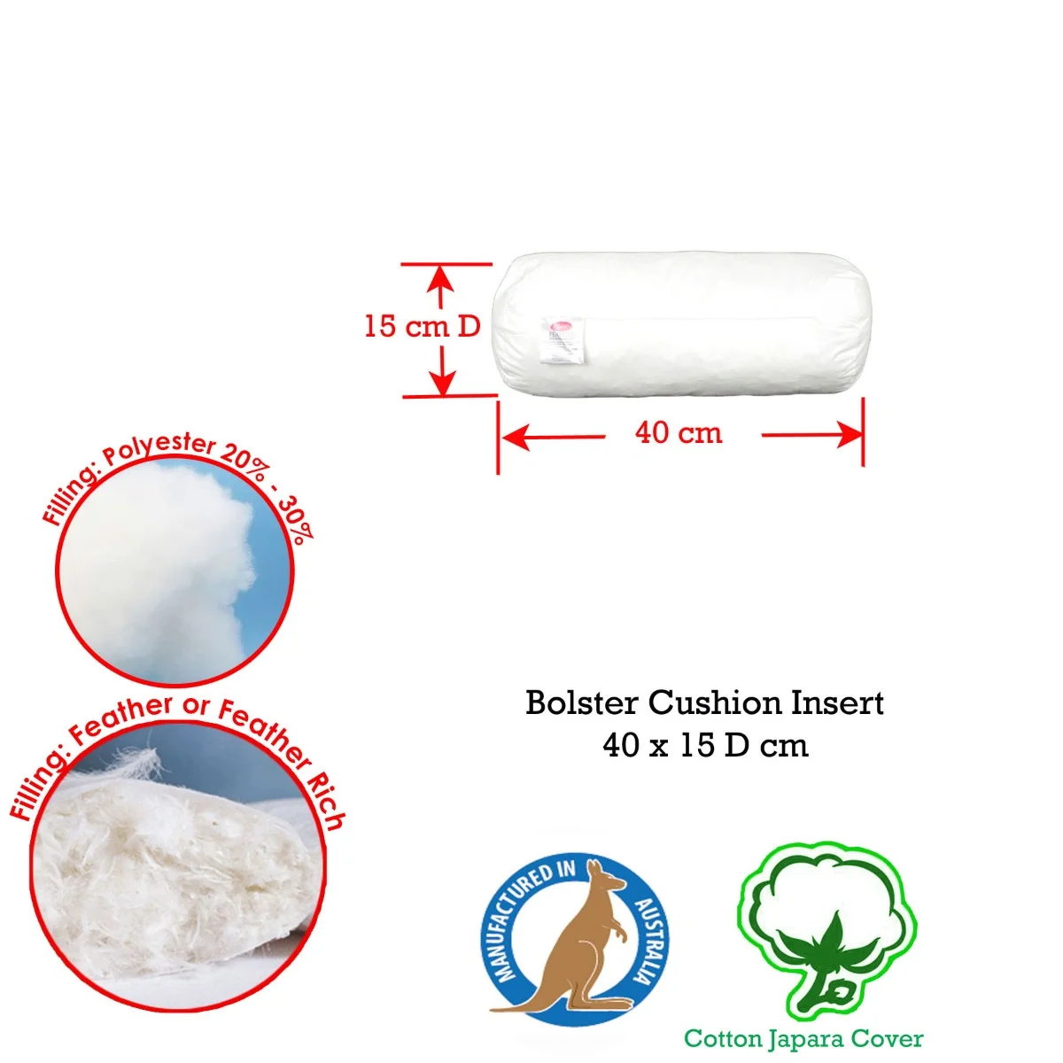 Add a little accent to your bed or sofa with this soft and luxurious Duck Feather Rich Fill Cushion Inserter Made in Australia which is perfect for your favourite cushion covers. It features solid colour design an filled with duck feather rich. Available in different sizes to fit any cushion cover. It is made from 100% Cotton fabric and approx 80% Duck Feather and 20% Polyester fill that provides maximum and lasting comfort. Made in Australia.