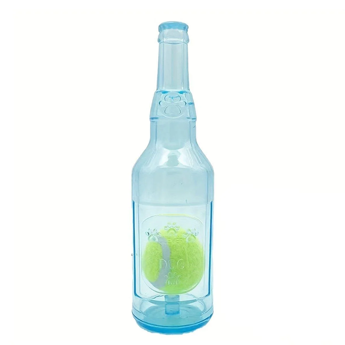 This playful and engaging dog toy is designed to look like a wine bottle, with a tennis ball enclosed inside, providing both entertainment and a teething solution for your furry friend. Made from durable, food-grade nylon, it is built to withstand the most enthusiastic chewers, helping to keep your pet’s teeth clean and healthy. This toy is perfect for interactive games like fetch or tug-of-war, and it even makes a squeaky sound when squeezed, adding excitement to playtime.