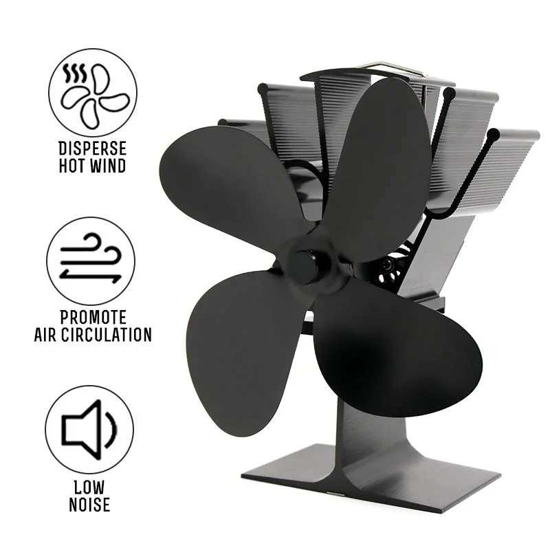 Efficient 4-blade Heat-powered Stove Fan - Aluminum - Red