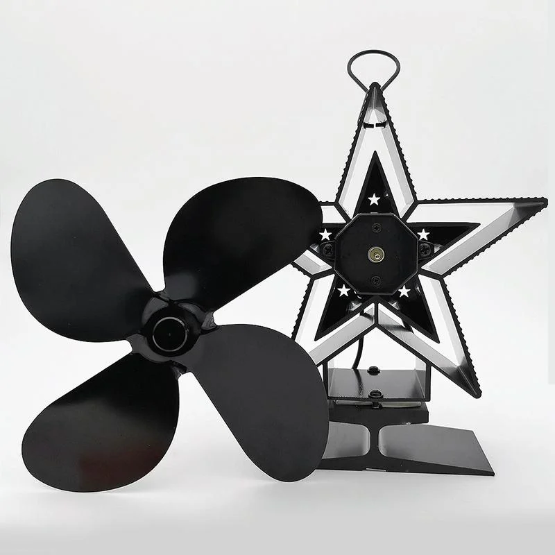 High Temp 5-blade Heat Powered Stove Fan for Fireplaces - Black