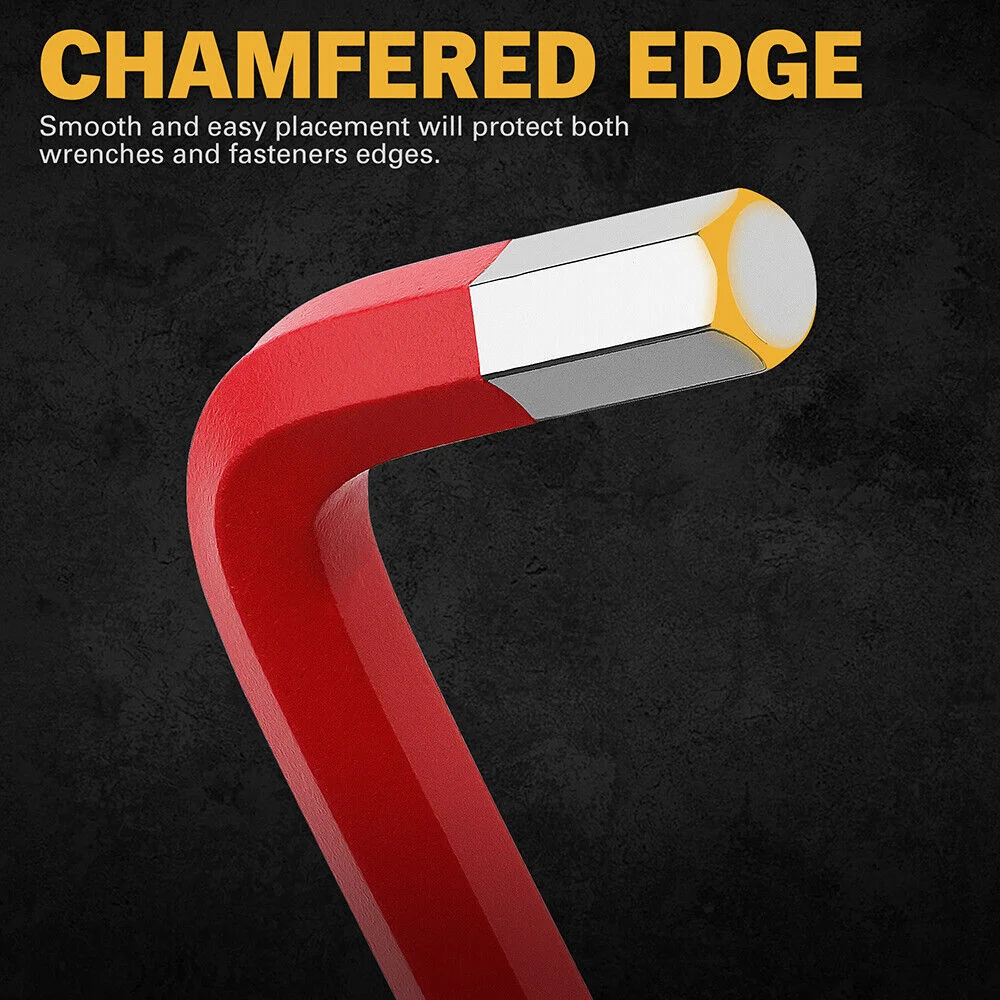 【DURABLE MATERIAL】Constructed from high-grade CR-V and Chamfer material, each allen wrench in this set boasts a mirror chrome finish with powder coating for maximum durability and resistance against corrosion. This makes the set perfect for heavy-duty use in both professional and DIY projects, ensuring long-lasting reliability and strength.