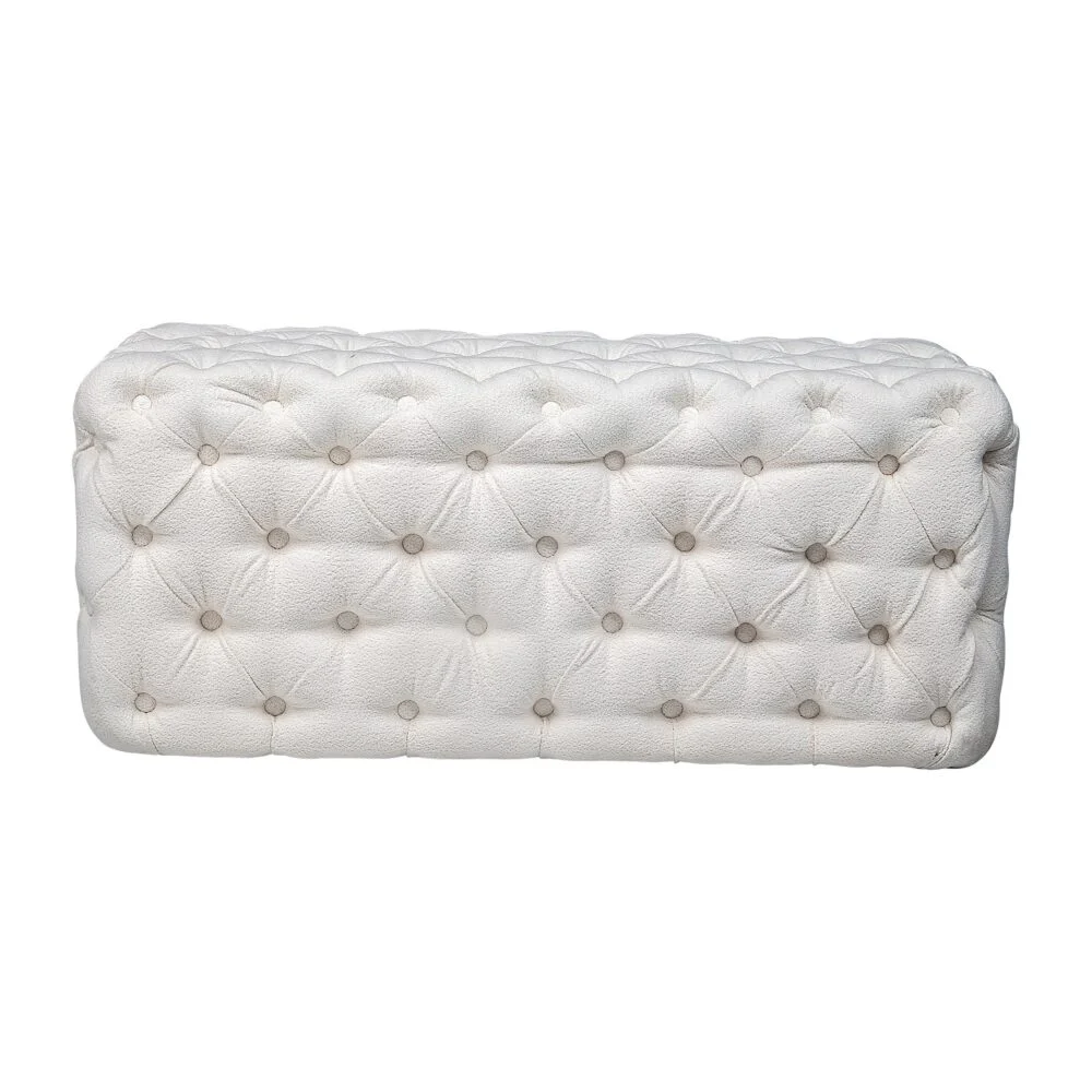Make Boucle the sweetest touch at the foot of your bed or in your lounge. This ottoman is a multi-purpose piece that can be used as a bench, a tray, or a foot rest. The button tufted design features softened, rounded corners, and panelled upholstery around the base for understated elegance.