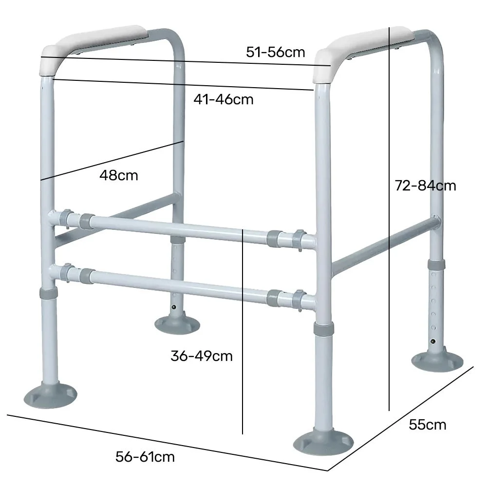 At the core of our Toilet Assistance Frame is the adjustable width, catering to a wide range of commode sizes. Whether you have a standard or elongated commode, our frame effortlessly accommodates your needs, making it the ideal choice for individuals of all ages and mobility levels.
