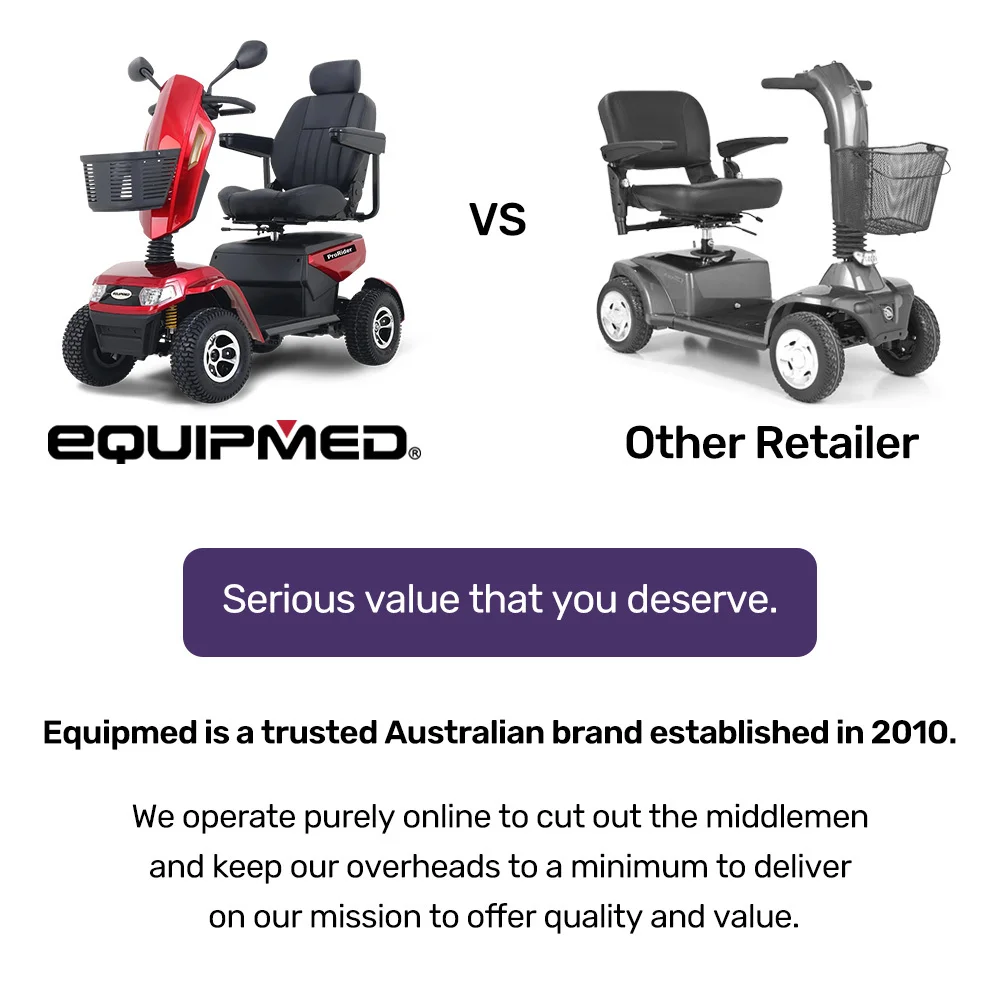 Equipmed has been producing high-quality heath and mobility products for over a decade, so you can rest assured that in the years to come, finding replacement parts like tyres or batteries will be straightforward.