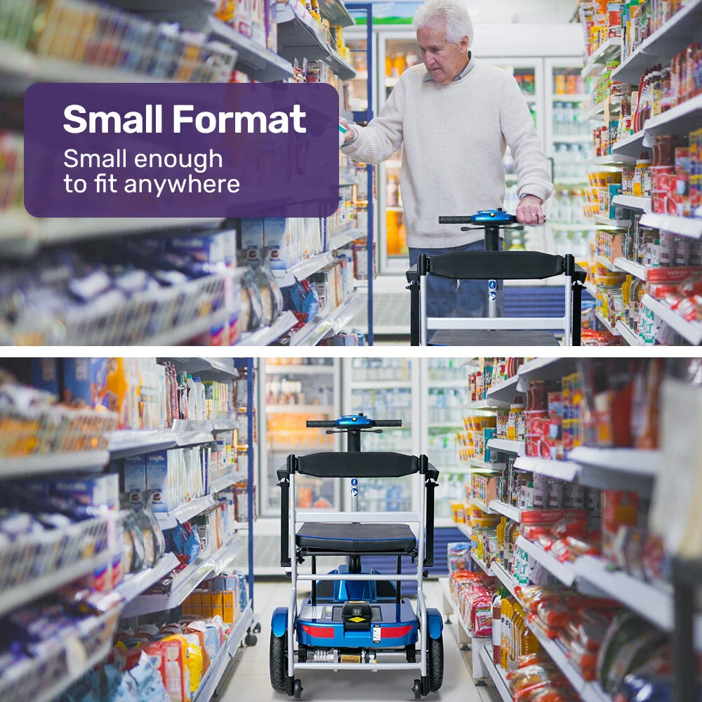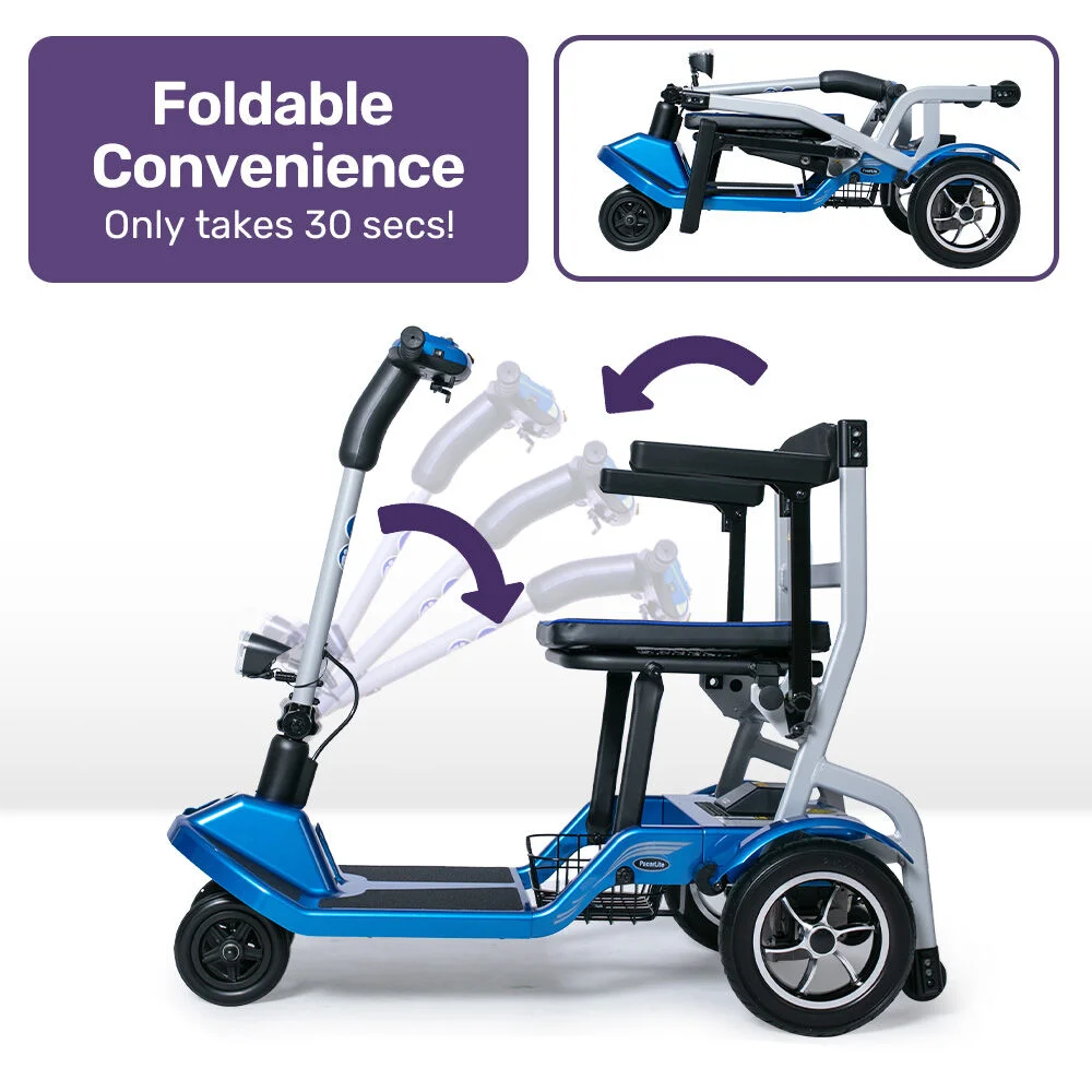 The Equipmed PacerLite Lightweight Mobility Scooter is built for effortless mobility. Weighing just 19kg (without the battery), its the lightest mobility scooter on the market. Folding in under 30 seconds, it fits easily into a car boot, under a table, or in a cupboard. The removable battery makes handling and charging even simpler.