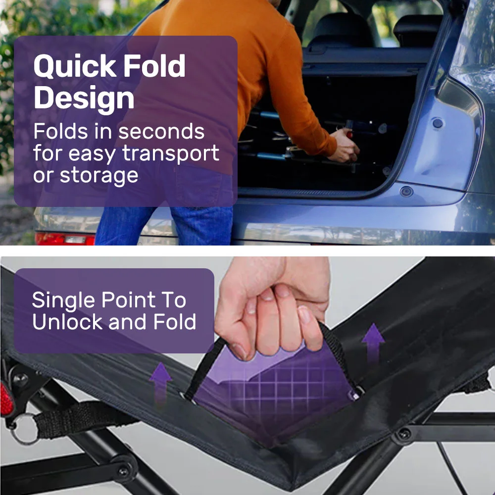 For easier transportation and storage, the rollator locks when folded. The compact foldable ErgoStride easily fits in the trunk of a car and compact storage areas.