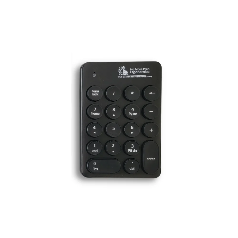Perfect for professionals who frequently enter numerical data, the wireless numeric keypad is compact and slim, with a 15-degree incline for ergonomic efficiency. Its flexibility allows you to position it on either side of the keyboard, ensuring maximum comfort and usability.