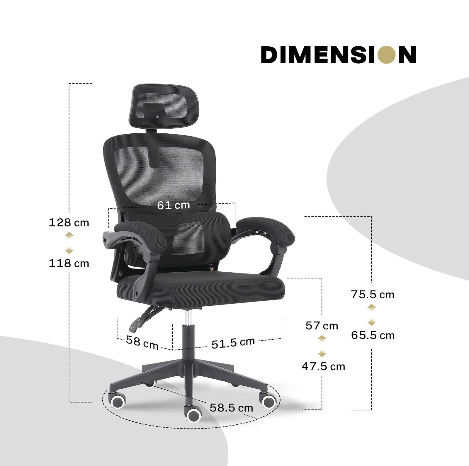 Chair Size (L x W x H): 58 x 58 x 118-128cm