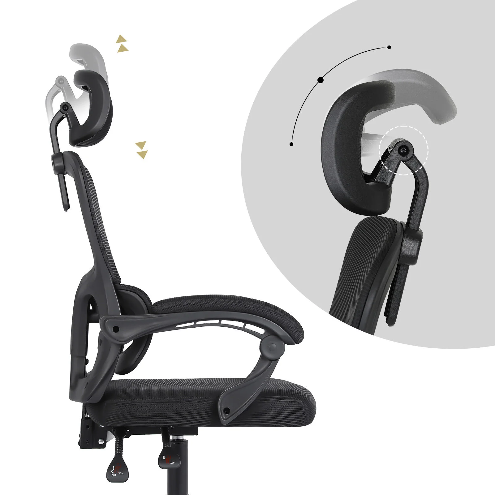 La Bella Ergonomic Office Chair - Lumbar Support, Adjustable Headrest VELTRA - Black