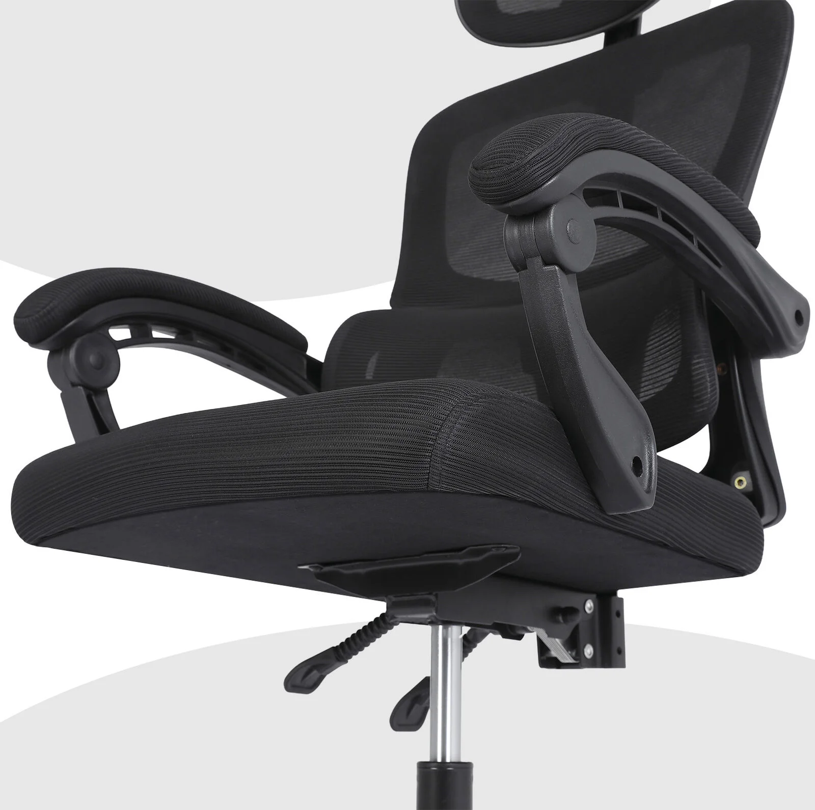The Veltra Ergonomic office chair offers a balance of comfort and quiet support. The breathable mesh helps keep things cool, while the built-in lumbar support encourages a more natural posture. An adjustable headrest adds support during longer stretches, and the padded armrests give your arms a soft place to rest.