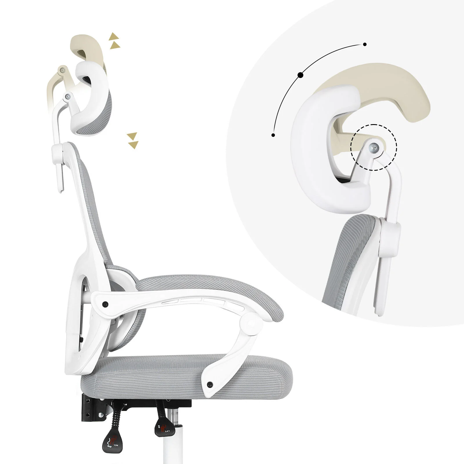 La Bella Ergonomic Office Chair - Lumbar Support, Adjustable Headrest VELTRA - Grey