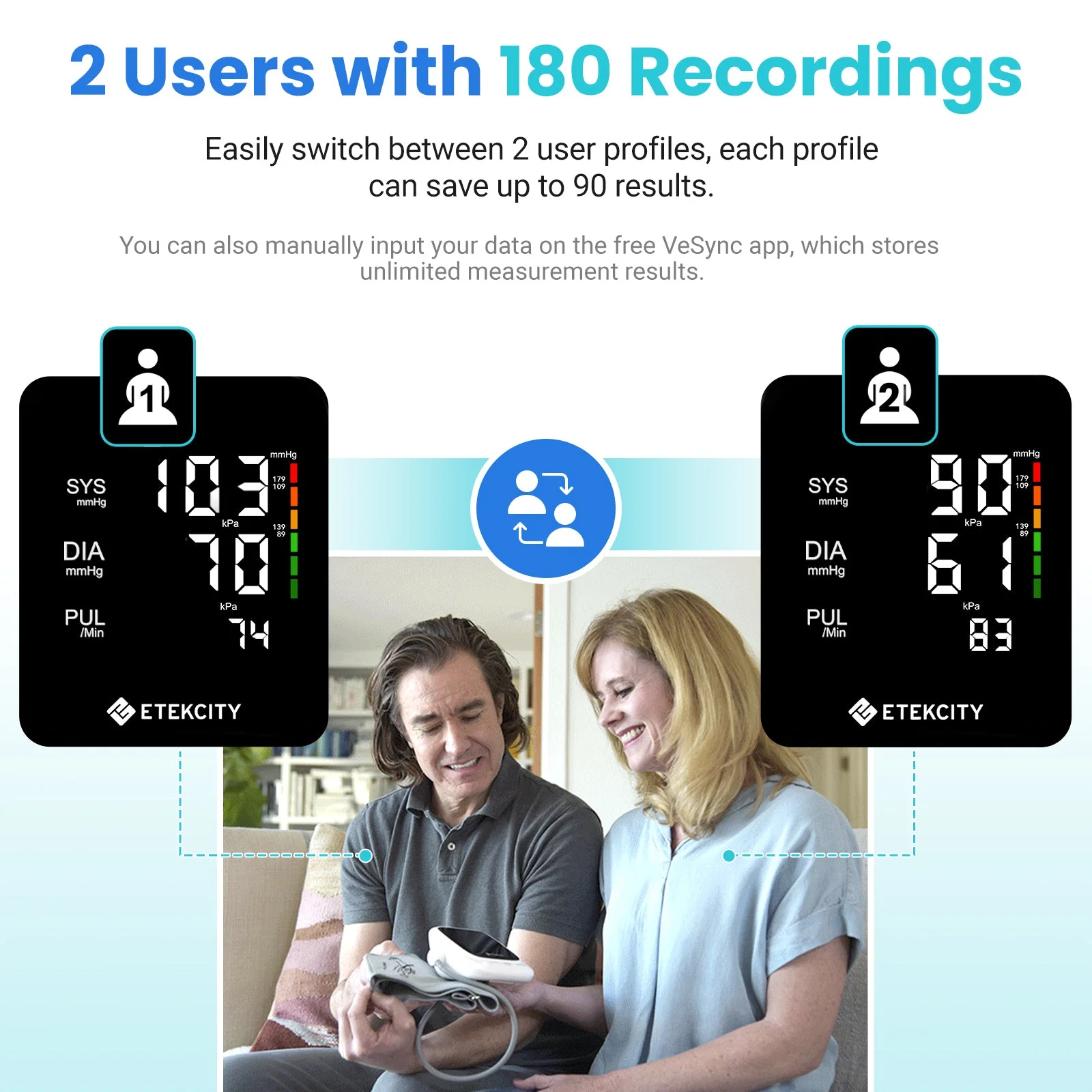 The Etekcity Blood Pressure Monitors for home use is highly accurate, and the blood pressure cuff is reliable. Features a large LED screen that's easier to read than other arm or wrist machines on the market as well as a portable USB-C charging cable, so you can take it on the go. The blood pressure cuff is ideal for home use and makes measuring blood pressure easier than ever.