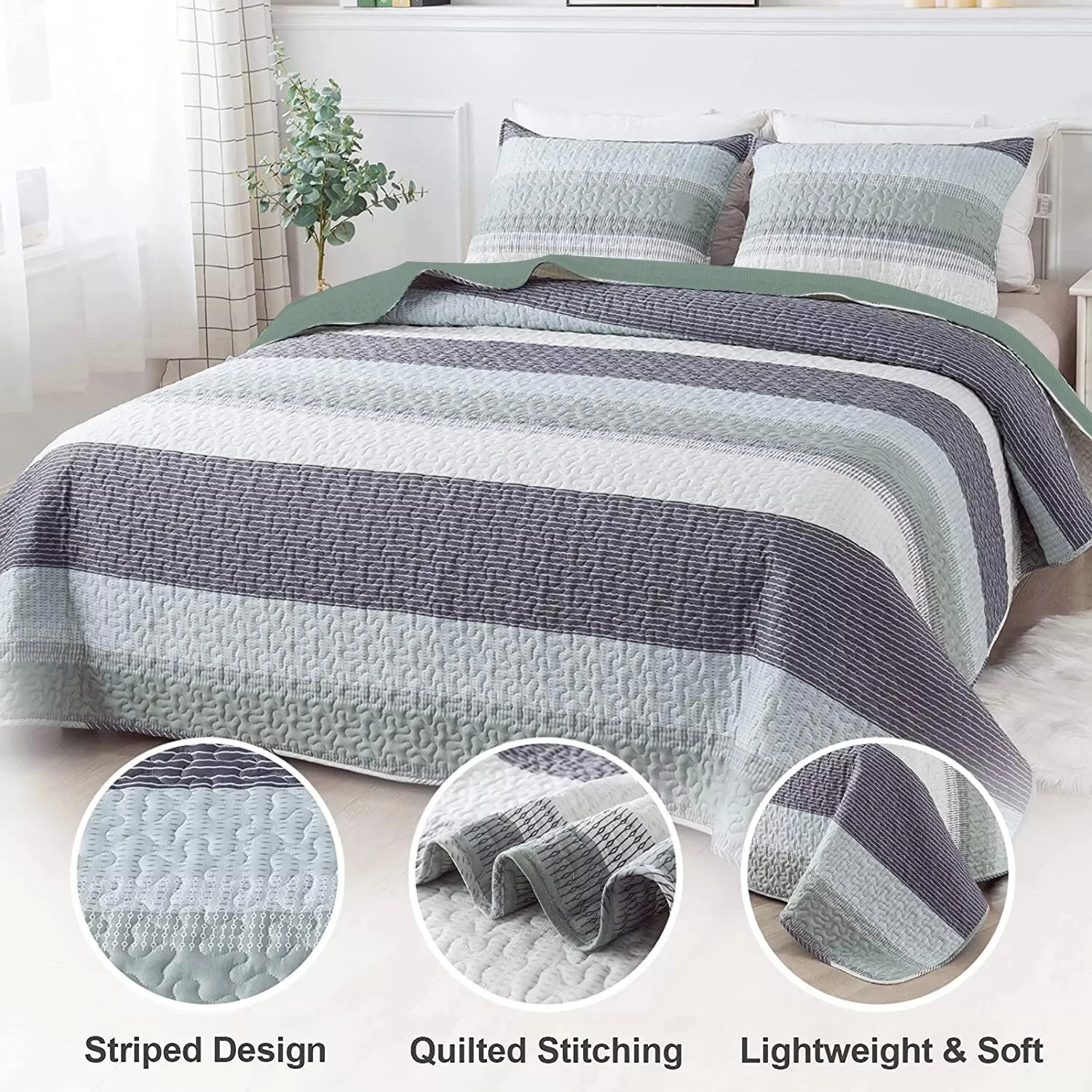 Enhance the comfort and aesthetic of your sleeping space and transform your bedroom into a cozy retreat with our 3-Piece Quilt Bedspread Sets Queen Size Coverlet Lightweight Reversible. This elegant set combines comfort and style, making it the perfect addition to any bedroom decor.