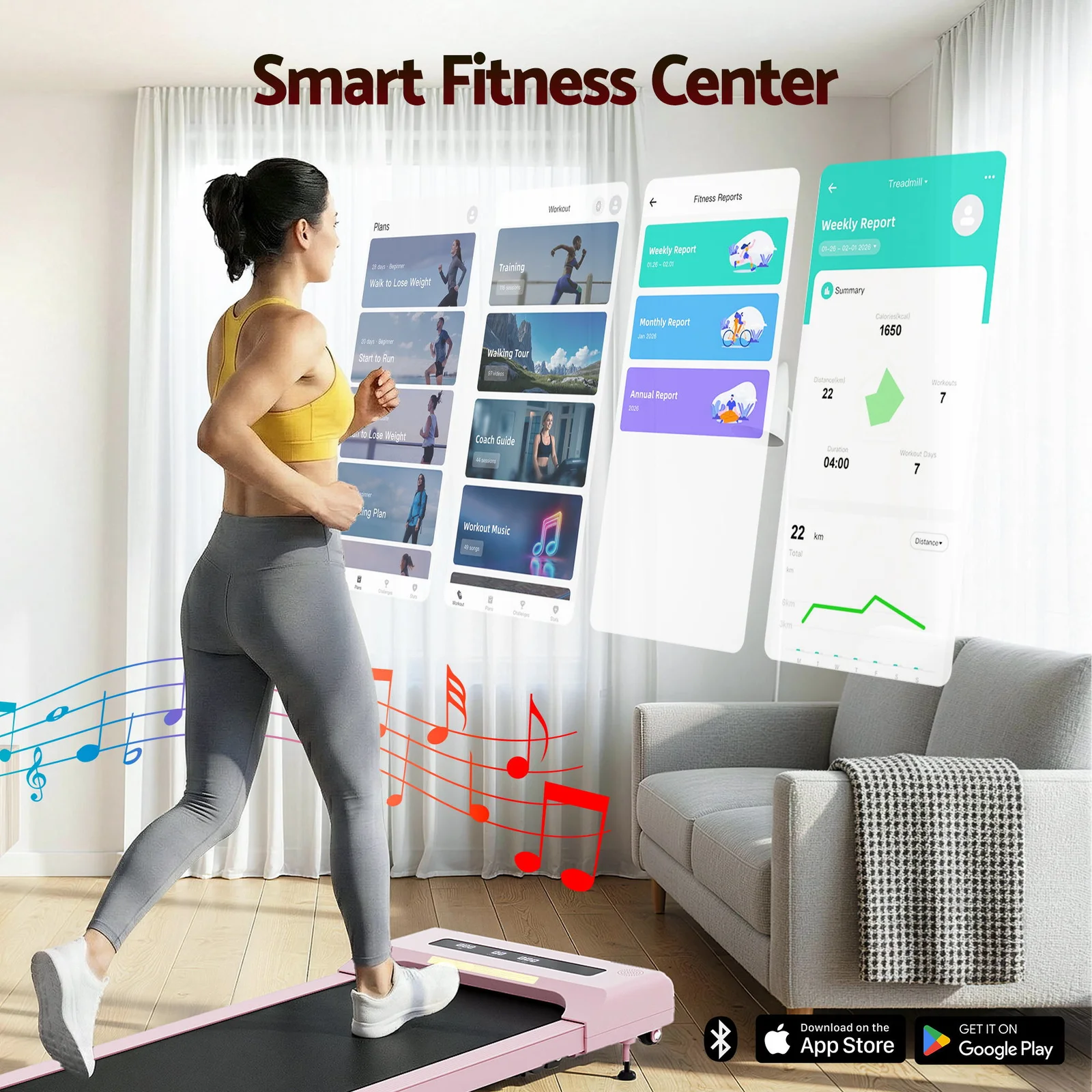 • Adjust pace seamlessly using the remote or Bluetooth app