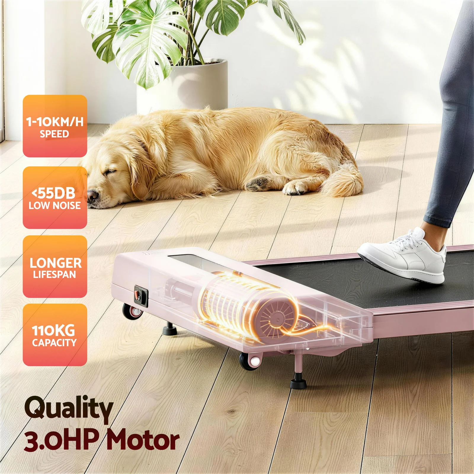 Upgrade your WFH setup with the Everfit Compact Walking Pad - your smart solution for staying active while working or relaxing. This space-savvy treadmill arrives fully assembled and glides smoothly into any home office, sliding neatly under desks when not in use. Experience comfortable walking with three adjustable incline levels and whisper-quiet motor technology. The innovative honeycomb shock absorption cushions every stride while the extra-wide surface keeps you stable during calls or streaming sessions.