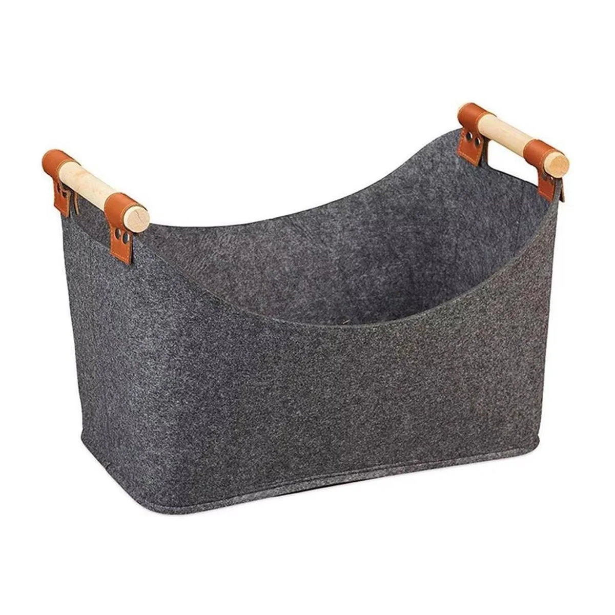 This felt firewood basket is designed to offer both style and functionality, with sturdy wooden handles and a spacious interior for various storage needs. Measuring 17.71 x 15.74 x 12.59 inches, it provides ample room for storing firewood, blankets, toys, and more. The high-quality felt construction ensures durability, while the leather-wrapped wooden handles offer a comfortable and elegant grip. This versatile basket is perfect for use in living rooms, bedrooms, or as a shopping bag.