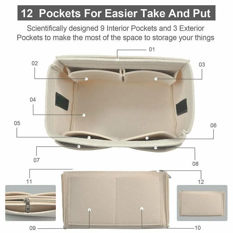 Keep your handbag neat and organized with this felt handbag organizer insert. Crafted from durable and lightweight felt material, it protects your bag’s interior while ensuring your essentials are easy to access. The structured design helps maintain your handbag’s shape, preventing sagging and clutter.