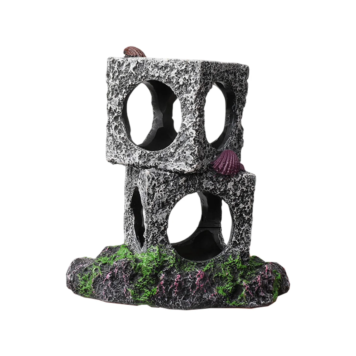 Create a more enriching aquatic environment with this square stone-style resin shelter, available in 2, 3, or 5-cube configurations. Designed to resemble natural rock, it offers hiding and breeding spaces for small fish, shrimp, and cichlids. The open circular design encourages movement, reduces stress, and supports a balanced ecosystem. Perfect for aquascaping, this shelter blends function and visual appeal for any freshwater or saltwater aquarium.