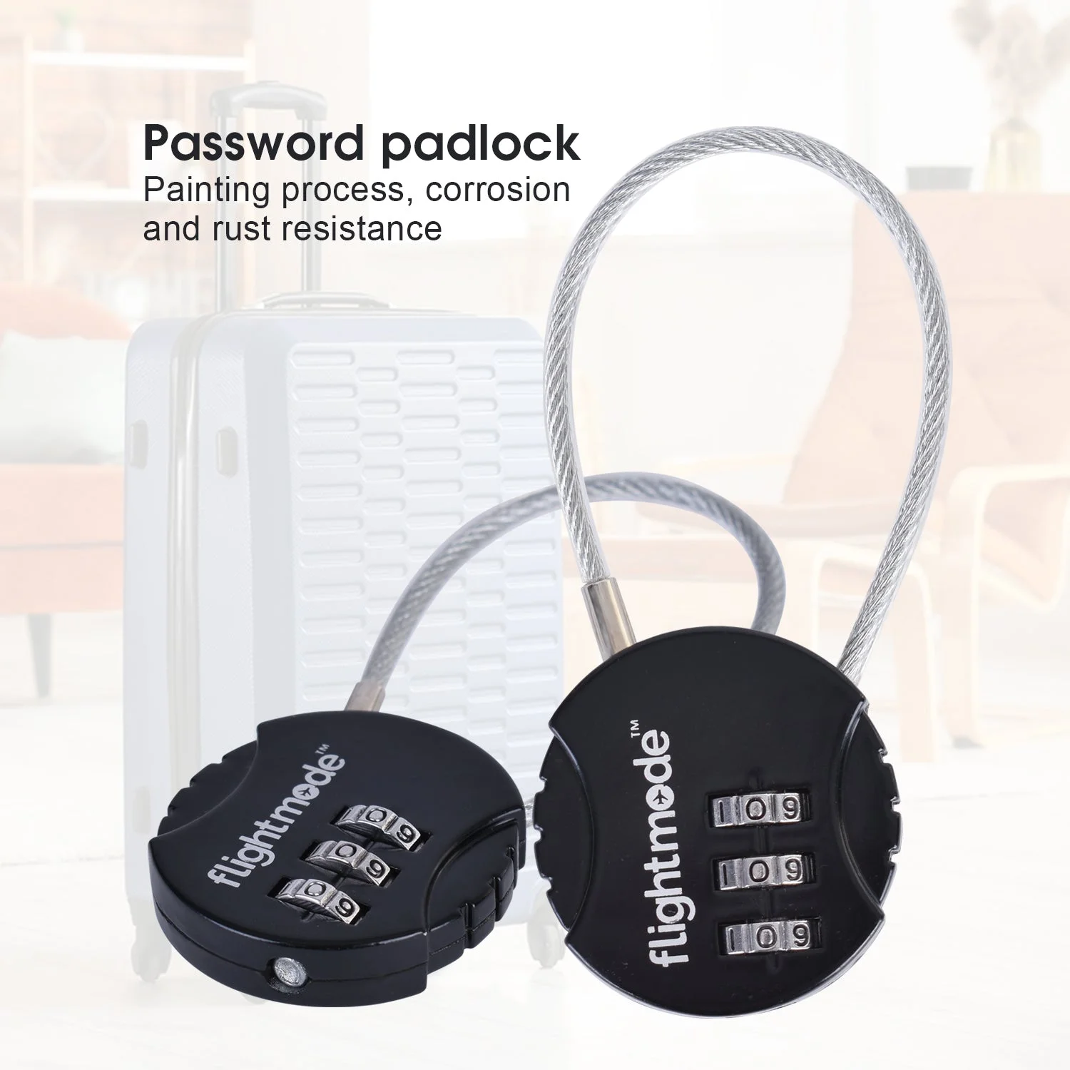 Versatile and flexible combination padlock for luggage with a reliable 3-dial design. No keys to lose, easy to set using a code of your choice.