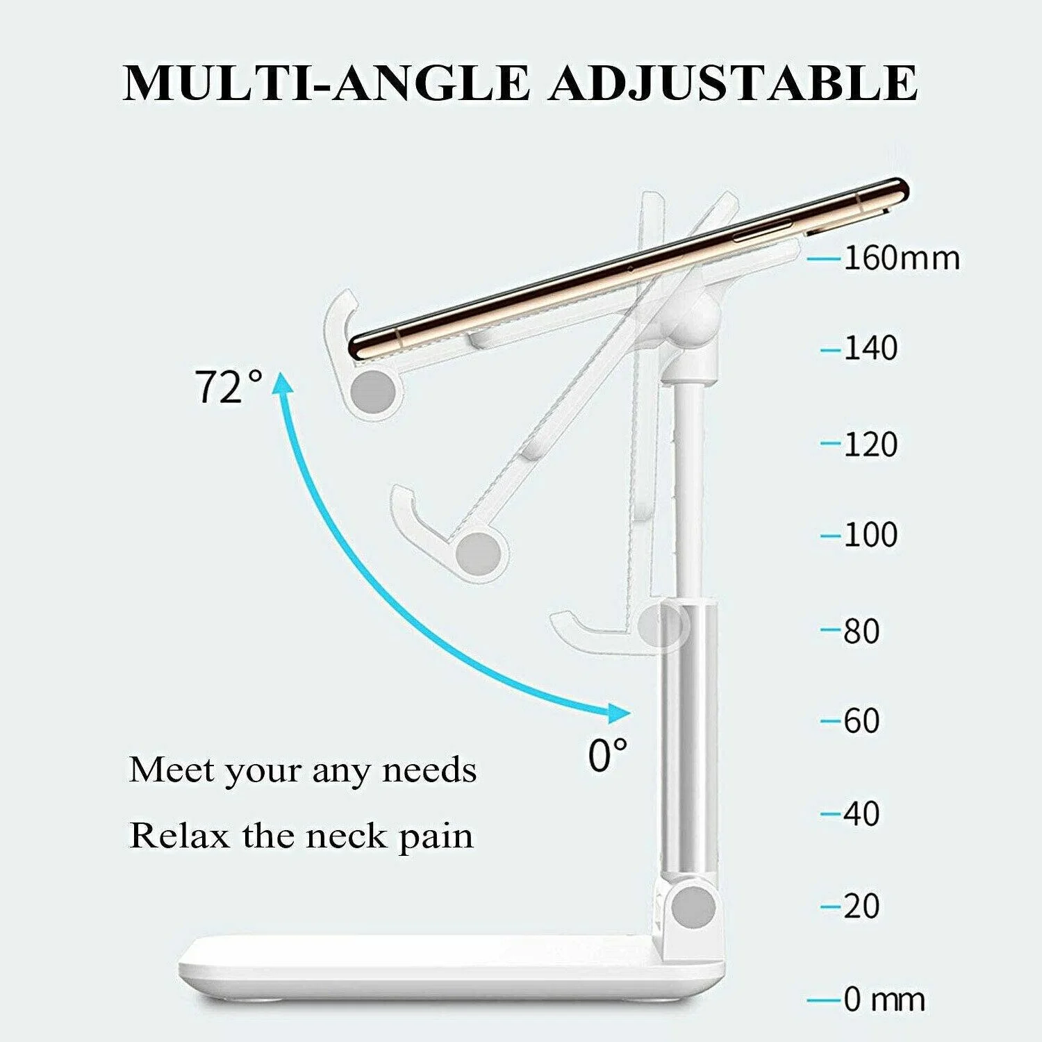 1. Foldable telescopic phone holder, height and angle adjustable, small size, stable and flexible, suitable for mobile phones and tablets.