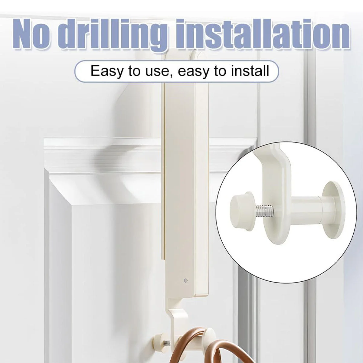 Maximize your home space with this sleek and compact folding behind-the-door hook hanger. Designed for ease of use, it can hold up to six garments such as coats, hats, or towels. The simple and stylish design fits perfectly behind most doors, helping you to keep your space organized without the need for drilling or permanent installation. Perfect for bedrooms, bathrooms, or even the office, this practical hanger is portable, space-saving, and stylish.