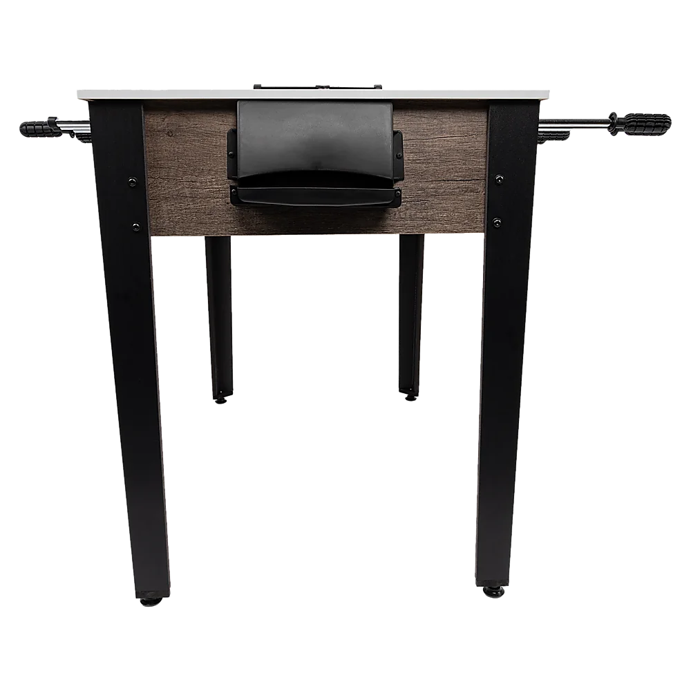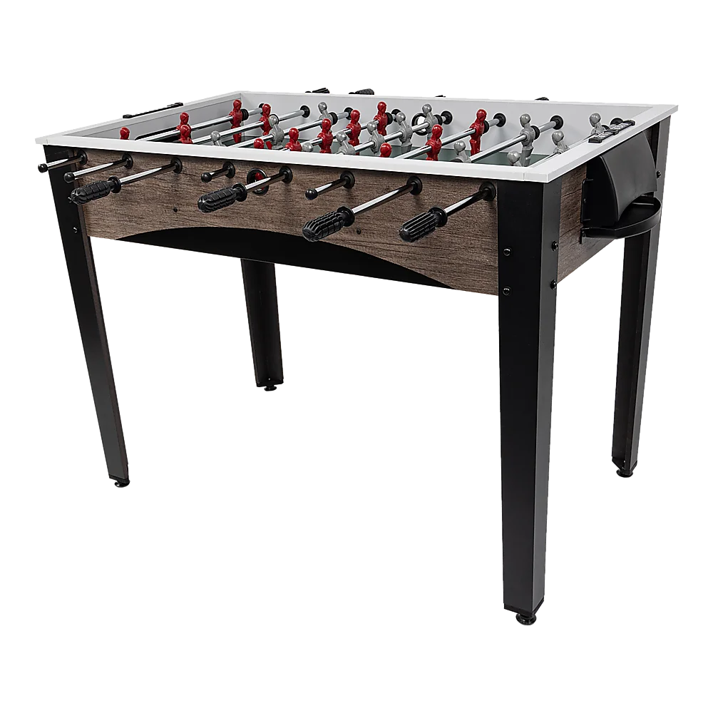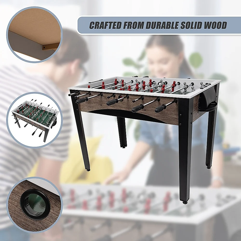 Elevate your foosball experience with this gaming table from Randy Travis Machinery, a perfect addition to your home or office recreation. Crafted from durable solid wood and featuring steel rods finished in gleaming chrome, this table is designed for lasting enjoyment, even with daily use. Kickstart the game effortlessly with ball serve cups on each side. Ideal for family fun, it's a great fit for your rumpus room and makes an excellent gift for foosball enthusiasts of all ages.