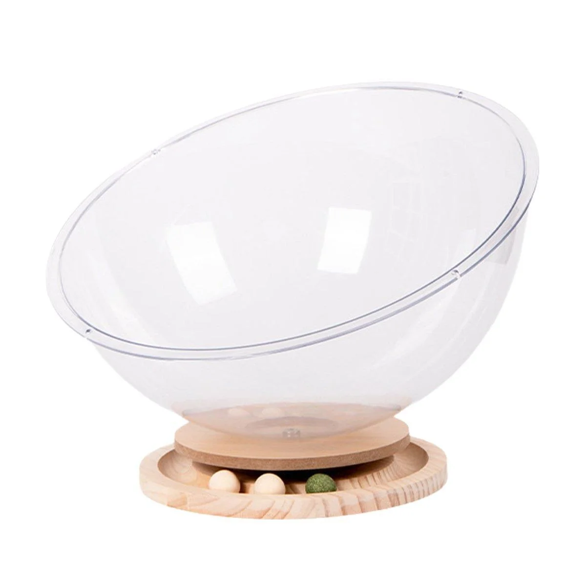 Material: Transparent acrylic bowl, solid wood turntable base