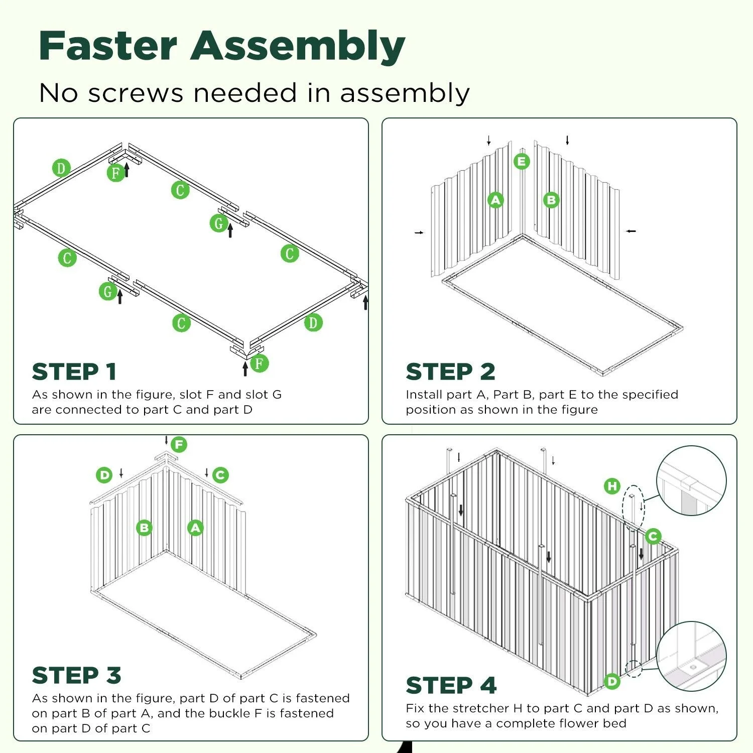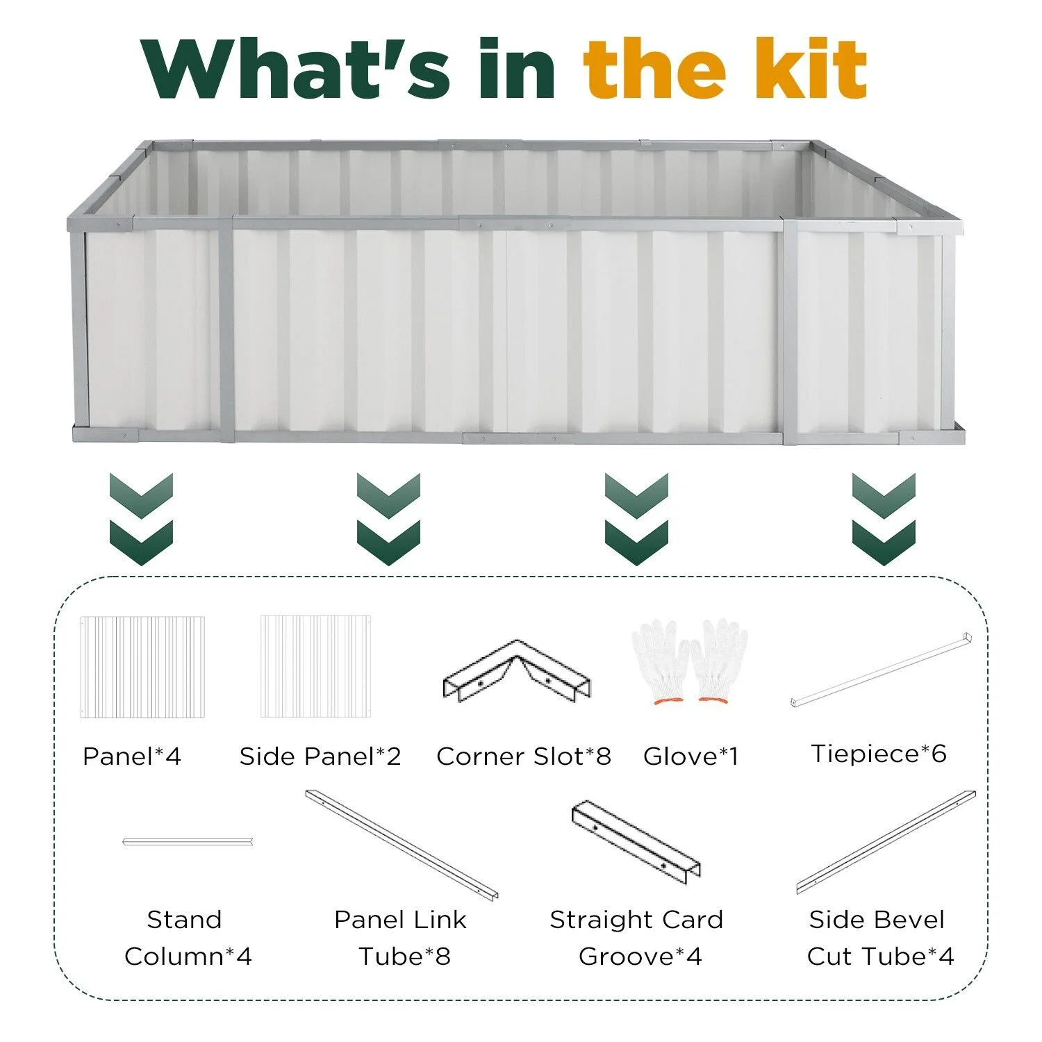 Galvanised Steel Raised Garden Rectangle Bed 160x80x42cm No-Screw Oval