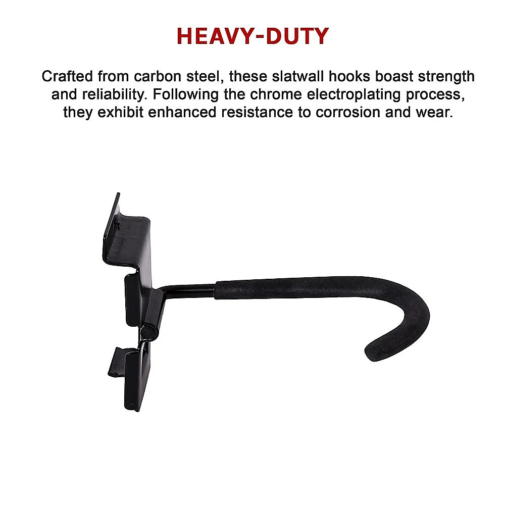 Crafted from carbon steel, these slatwall hooks boast strength and reliability. Following the chrome electroplating process, they exhibit enhanced resistance to corrosion and wear.