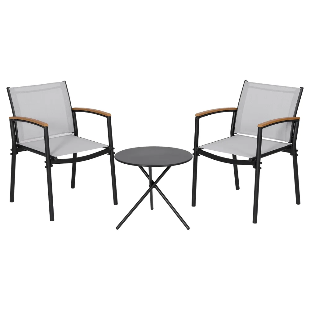 Enjoy lasting comfort with the Gardeon patio set. Its sturdy, powder-coated solid steel frame provides exceptional strength, weather resistance, and anti-rust durability. The upgraded Textilene fabric chairs are breathable for a cool feel in summer, plus they're weather-resistant and easy to clean. Designed with ergonomic armrests and rust-proof screw covers for total relaxation. This lightweight, modern set is easily moved to your garden, balcony, or poolside. Assembly is quick and hassle-free, taking just 15-20 minutes with all parts and tools included.