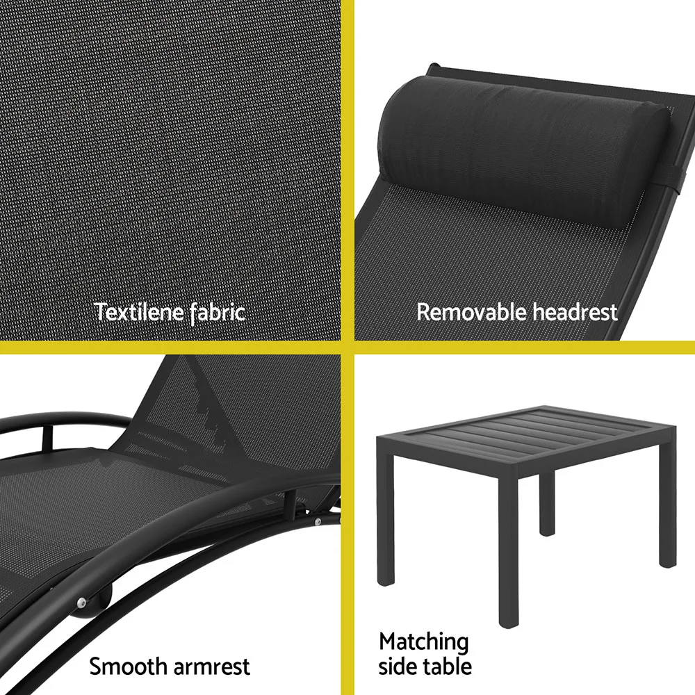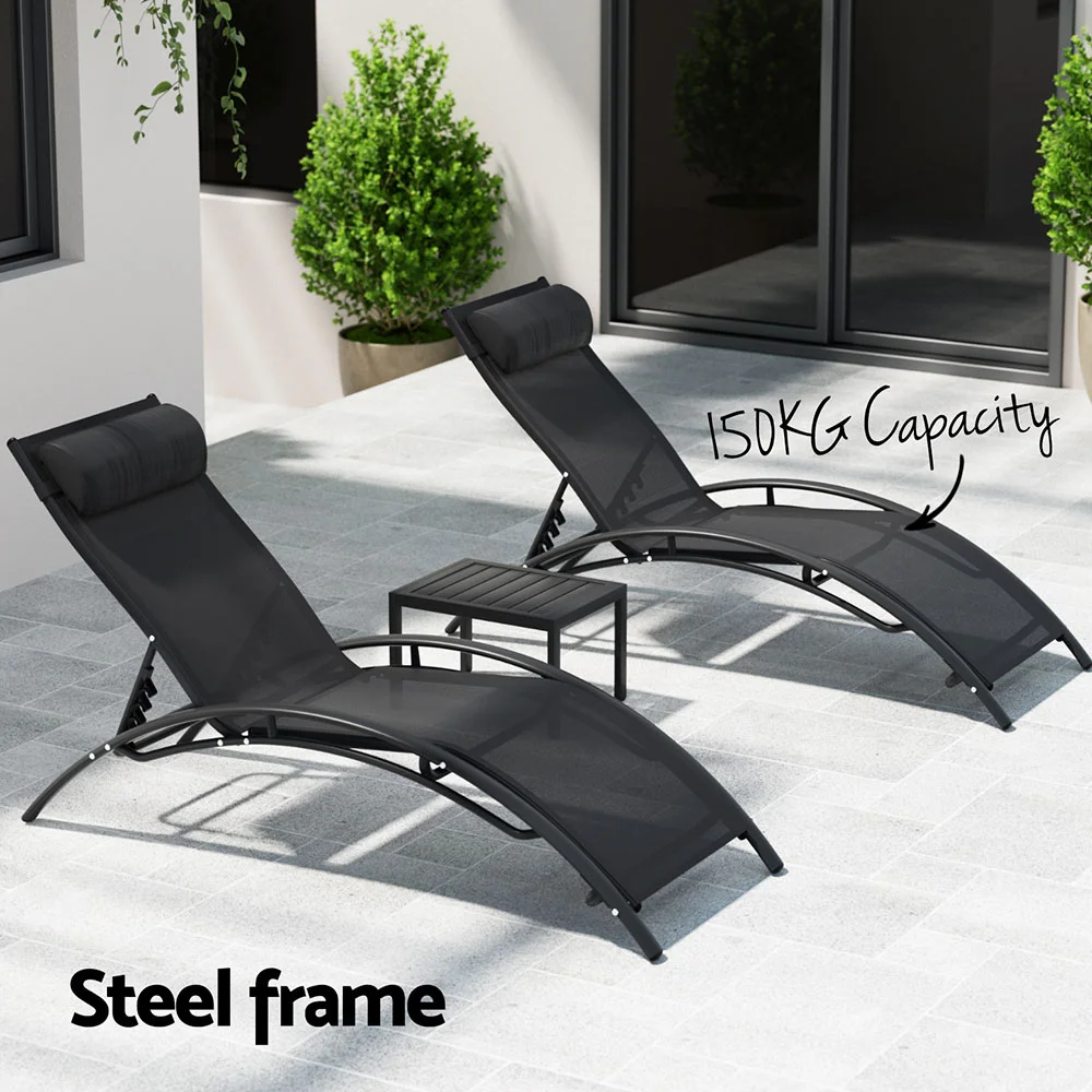Make the most out of every sunny day with a Gardeon Sun Lounger. The durable steel frame is designed to withstand the wind, rain and shine gracefully, and the premium textilene fabric is comfortable as well as weather and UV-resistant. The slender profile is designed to please, with 5 adjustable backrest settings offering you the perfect position to rest and relax. The padded headrest is adjustable and removable so you can achieve your ideal level of comfort. Best of all, the lounger is easily assembled and can be used anywhere such as the beach, the park, poolside or even indoors. Have more fun in the sun with a Gardeon Sun Lounger.